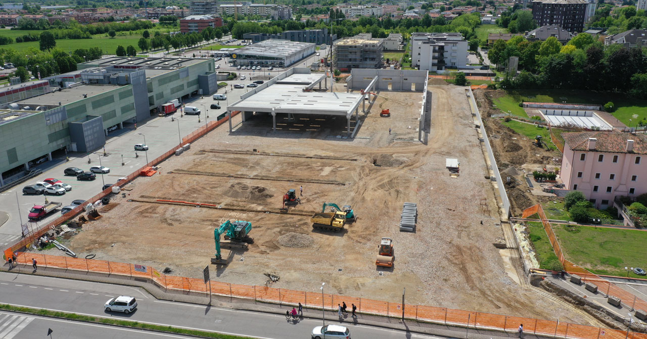 Prende forma il nuovo punto vendita Interspar di Castelfranco Veneto. Il cantiere avviato nei primi mesi del 2024, si estende su un area di 14000 mq, che comprenderà il supermercato ed i relativi parcheggi.